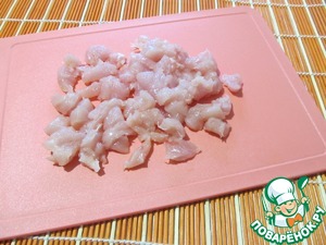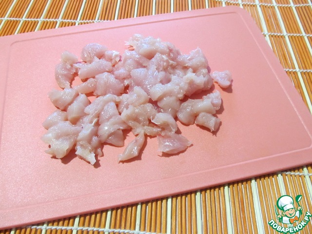 Куриное филе порезать кубиками.