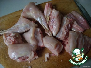 Тушку кролика разрубить на куски.