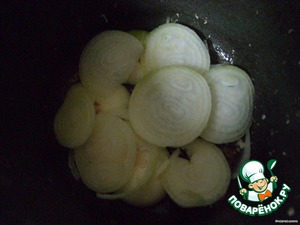 На дно чугунка выложить слой из колец лука