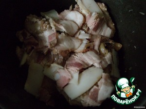 Далее слой из кролика, сала и грудинки