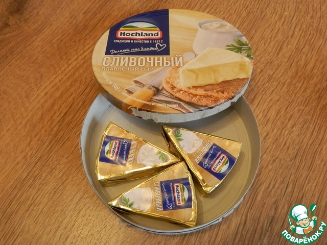 Для заправки используем плавленные сливочные сырки "Hochland".