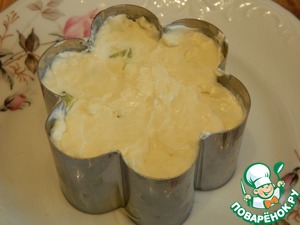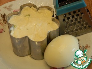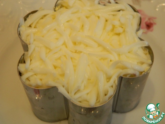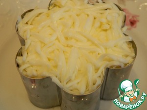 Получился вот такой цветочек. Сверху прикроем его сыром, вырезанным формой.