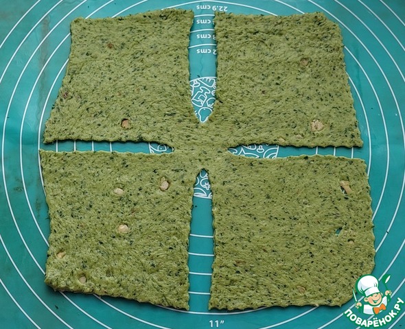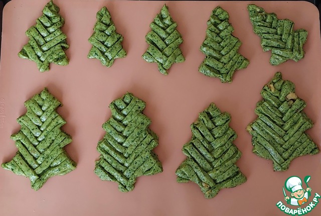 Предлагаю вашему вниманию новогодние булочки с грецкими орешками, покрашенные с помощью шпината.