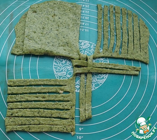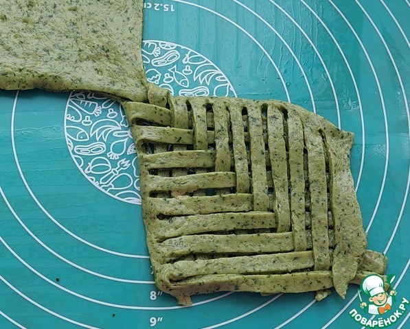 Далее сделать надрезы на оставшихся кусочках и также переплести, выдавить формочкой. Таким образом, сформировать булочки из остального теста и из излишков.