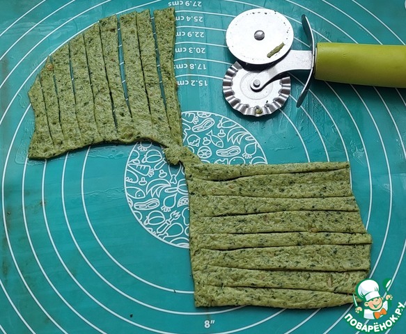 После тесто ещё раз вымесить, разделить на 4-5 частей. Каждую часть раскатать в прямоугольник, толщиной 0,5-0,7 мм.