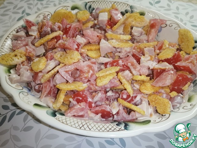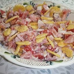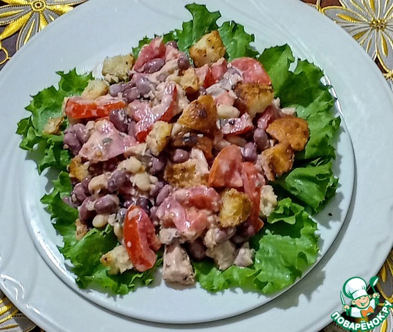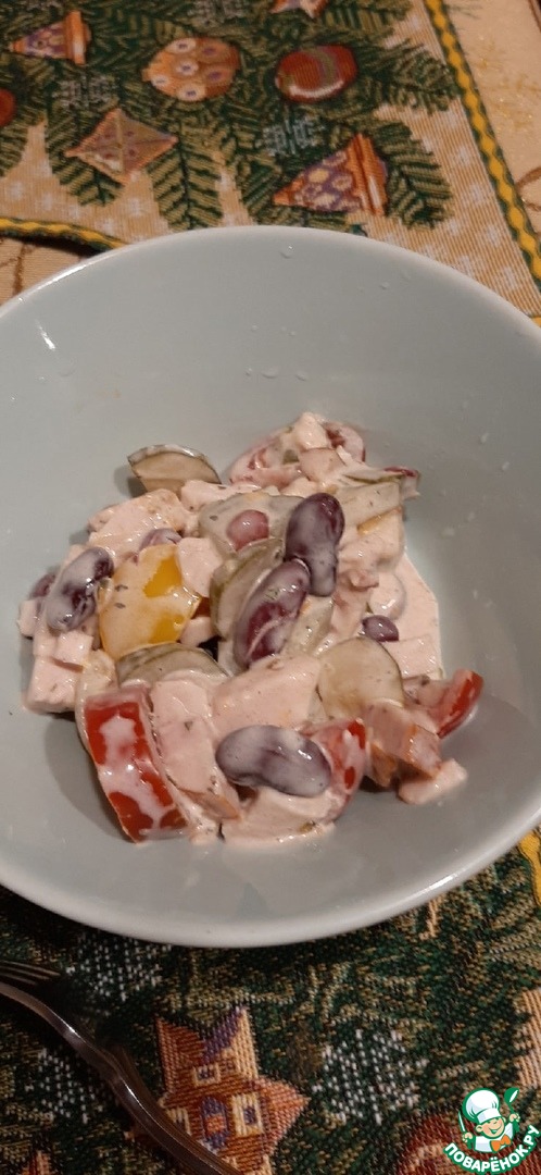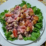 Когда-то давно читала о жизни фаворита ЕкатериныII - графа Орлова и запомнила, что любимым его блюдом были копчёные куропатки и курицы... Не знаю, была ли та информация правдива, но этот салат графу точно бы понравился - сытный, насыщенный, вкусный, мужской салат. Хотя женщины тоже не отказываются! Прошу к столу!