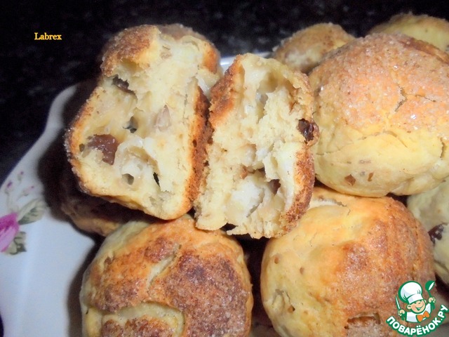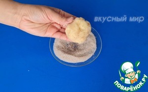 Из теста сформировать 20 одинаковых шариков. Сахар смешать с корицей. Обвалять творожные шарики в сахарной смеси.
