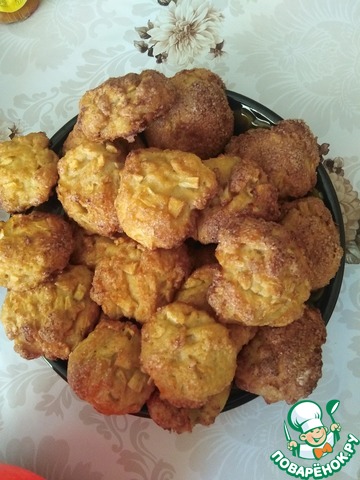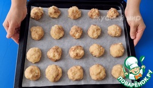 Творожные шарики выложить на противень, застеленный пергаментом, на достаточном расстоянии друг от друга. Выпекать творожно-яблочное печенье в предварительно разогретой до 180 градусов духовке 20-25 минут.