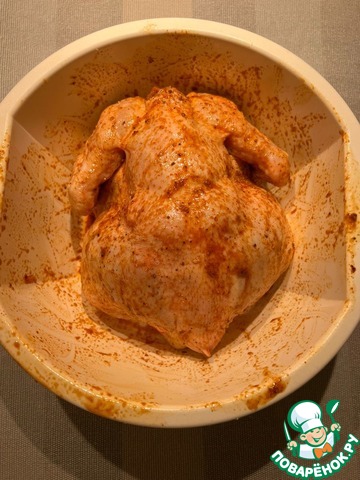 - Маринад (соль, перец, соевый соус, растительное масло, сухой чеснок) — по вкусу