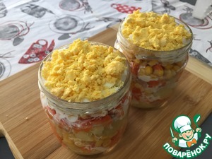 Берем две баночки по 250 мл. В них будем выкладывать салат слоями.