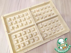 Если у вас есть электровафельница для выпекания мягких венских вафель, можно воспользоваться электровафельницей, если у вас нет такой вафельницы, можно воспользоваться силиконовыми формами для выпекания вафель, как в моем случае. Форму смазать растительным маслом, заполнить картофельным пюре и отправить в разогретый до 180С духовой шкаф. Выпекать вафли до красивой румяной корочки.