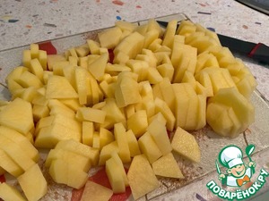 . Отвариваем мясо, а тем временем чистим картошку для борща.