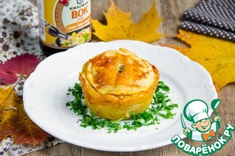Затем добавить приготовленный соус. Форму накрыть фольгой и отправить в разогретую до t180С духовку для запекания. Запекать блюдо до готовности. Затем снять фольгу, ложкой немного перемешать соус, далее подрумянить блюдо на гриле.