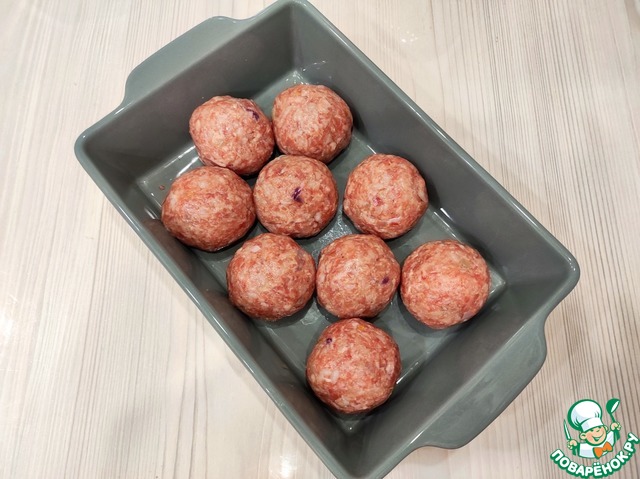 Сформовать тефтели. Тефтели выложить в форму для запекания.