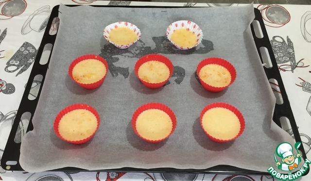 Достаем кексы из духовки.