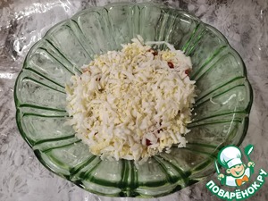 Яйца отварить, остудить и натереть на крупной тёрке.