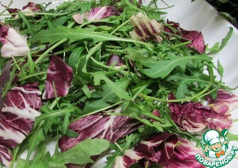 Салатный микс вымыть, хорошо обсушить.