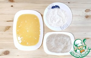 • Каждую половинку филе обвалакиваем в муке, затем яйце и панировочных сухарях.