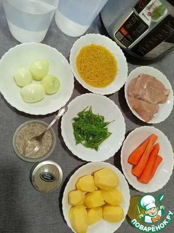 Ингредиенты для «Куриный суп с вермишелью»: