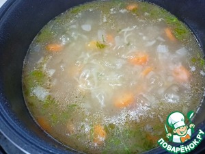 Добавляем в чашу укроп, вермишель и специи — Режим «Тушение»/ «Суп» 10 минут.