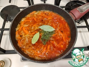• Затем добавить 100 мл. воды, лавровый лист (2 шт.).