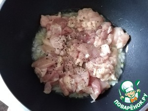 Следом отправляем мясо. Обжариваем немного. Я сильно обжаривать ничего не буду, больше притомлю.