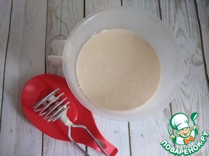 Тесто готово. Оно должно быть жидким и хорошо растекаться по сковороде.