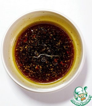 Для заправки смешать лимонный сок, масло, мёд и чёрный перец, можно добавить сушёные травы.