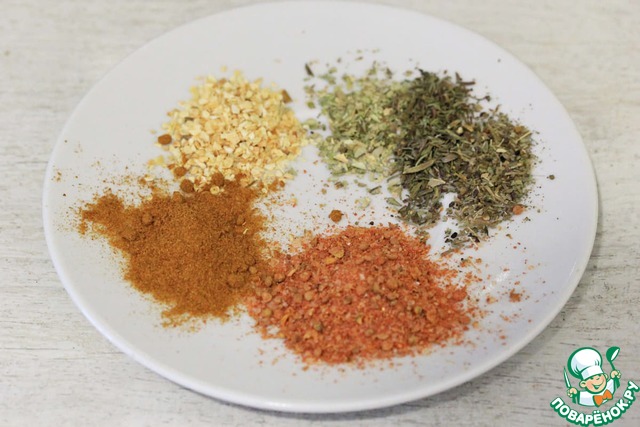 Подобрать специи. Я добавляю сванскую соль, сухой чеснок, паприку и сухие пряные травы.