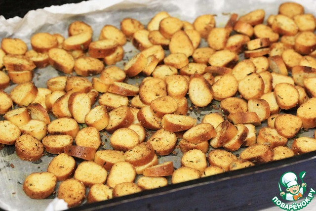 [+5]Сохнут в сто раз быстрее, чем хлебные. Симпатичные, аккуратные и очень аппетитные. Ещё и очень вкусные. Незаменимы для салата, особенно на праздничный стол.