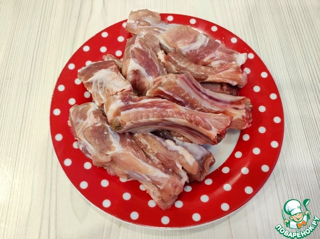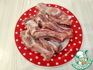 Свиные ребрышки (650г.) промыть, если мясо жирное, можно лишнее сальце срезать (по-желанию)