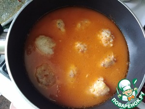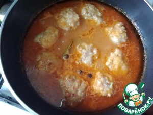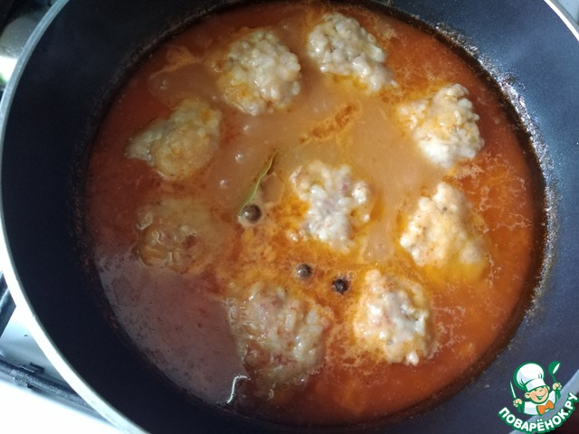 • Выкладываем тефтели. Опять доводим до кипения, убавляем огонь на минимум, накрываем крышкой и варим минут 30-40 до готовности.