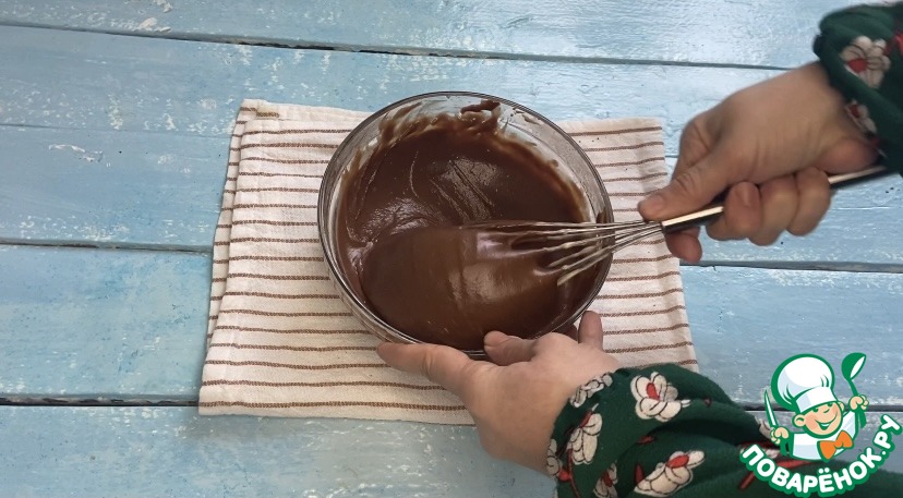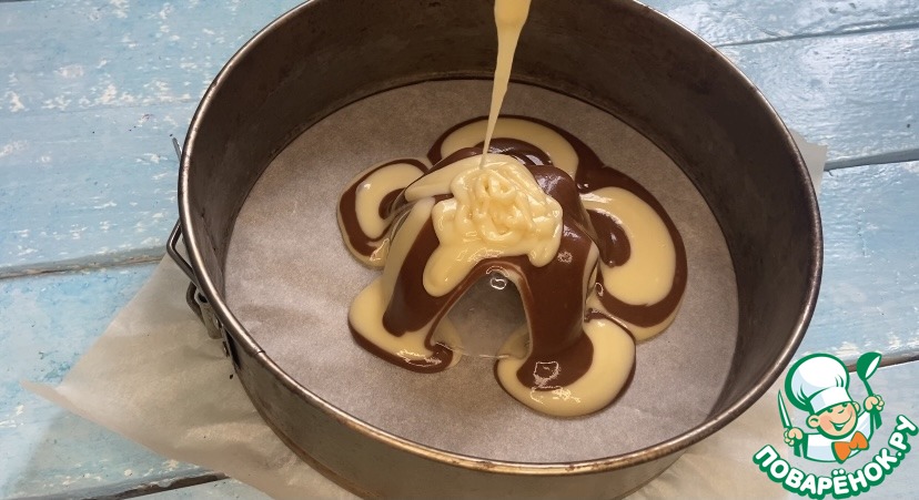 В одну часть тесто добавляем какао порошок