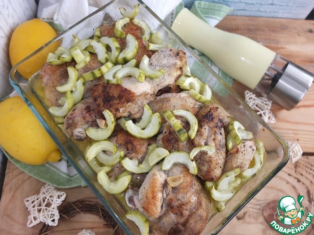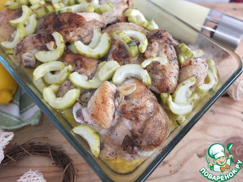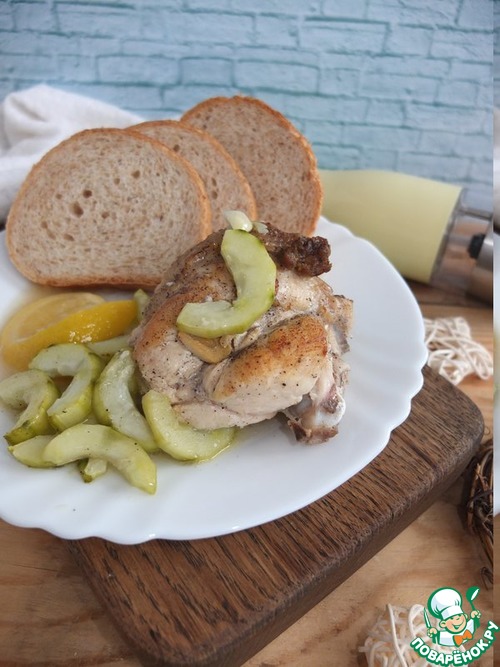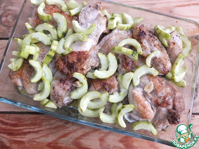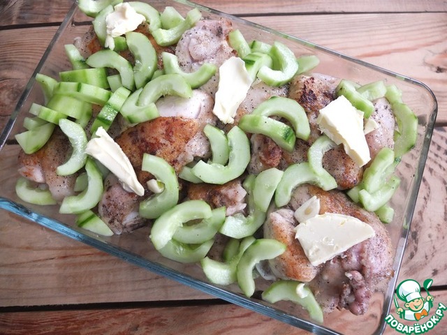 Курица получается сочной и ароматной, а запеченные огурцы придают блюду свежесть и легкость!