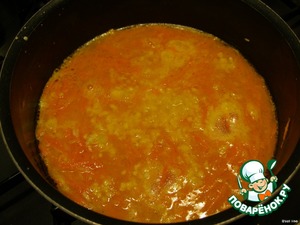 Добавить рис и перемешать, чтобы он весь был в масле.