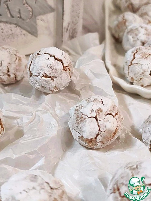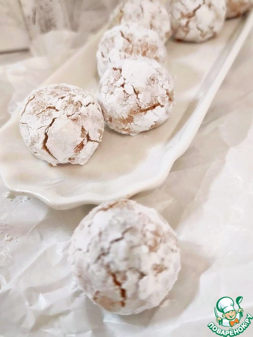 Каждый шарик обваляйте в сахарной пудре. Выложите на противень, застеленный пекарской мукой или силиконовым ковриком. Отправьте в разогретую духовку (t-170). Выпекайте 15 минут.