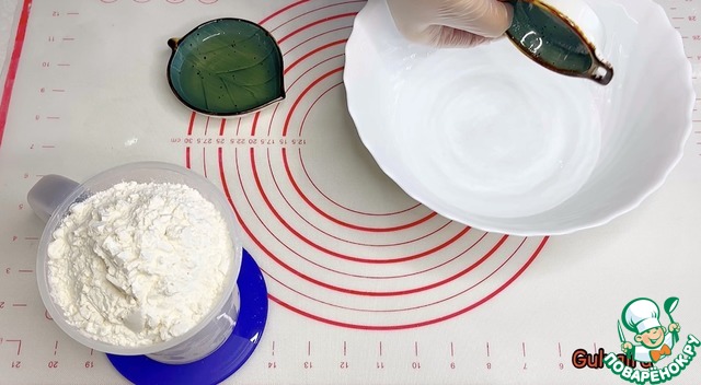 • Добавляем муку и замешиваем эластичное тесто. Накрываем пакетом и даём отдохнуть 15-20 минут.