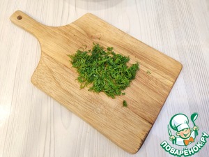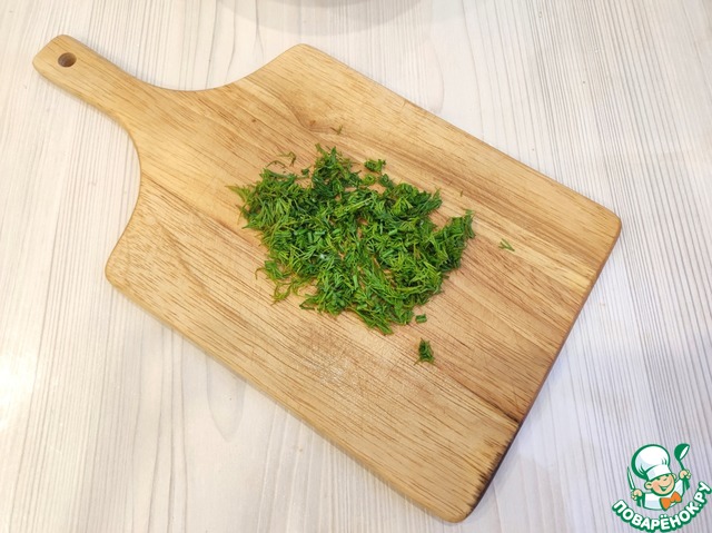 Нашинковать свежую зелень укропа.