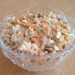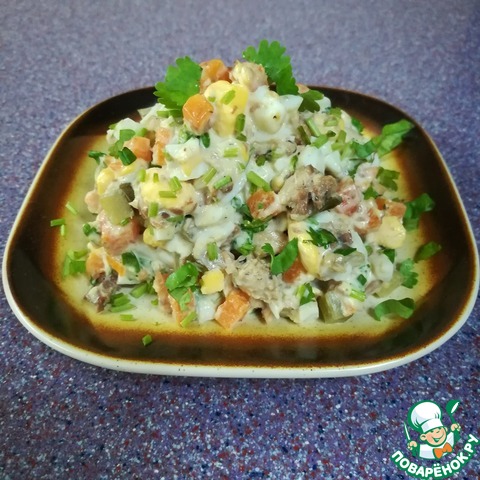 Нежный, приятный и незатейливый салатик. Станет отличным дополнением к обеду в кругу семьи. Да и на праздничном столе займёт не последнее место. Угощайтесь!