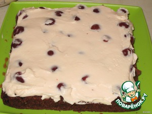Коржи можно немного пропитать вишневым компотом, коржи хоть и нежные, но пропитка не была лишней, но тоже надо в меру, чтобы не размокло, сама вишня тоже дает сок.