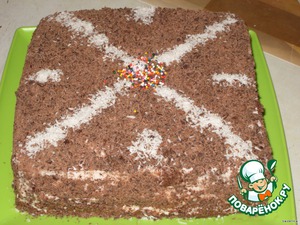 Оставшийся шоколад натереть на терке и посыпать торт.