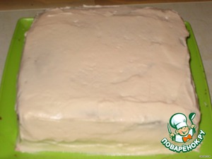 Накрыть вторым коржом, смазать верх и бока кремом.
