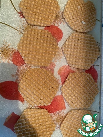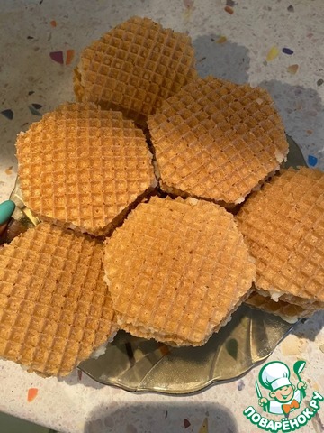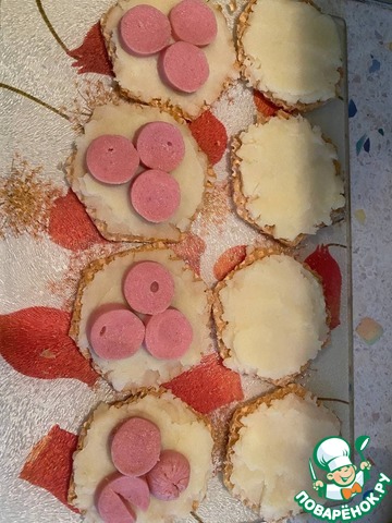 Сверху накрываем второй вафлей намазанной картошкой (без сосисок).