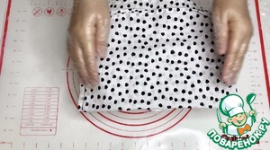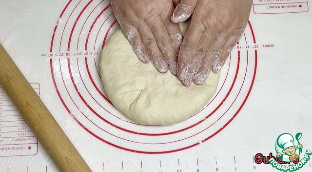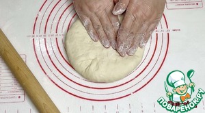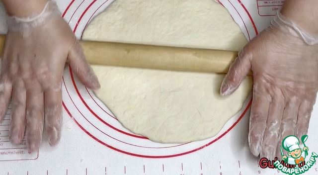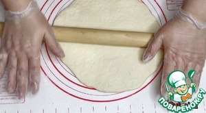 Слегка надо расплющить тесто, затем аккуратно раскатываем скалкой до нужных размеров.