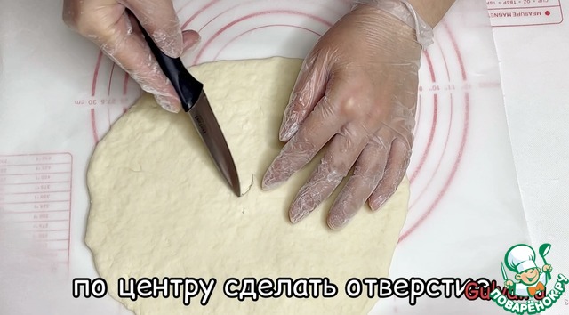 Делаем по центру отверстие, чтобы воздух вышел. Смазываем яичным желтком, посыпаем немного сыра