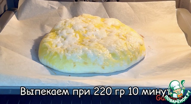 В заранее разогретую духовку при 220 гр до готовности. Примерно 10 минут. По желанию можно смазать готовый хачапури сливочным маслом.