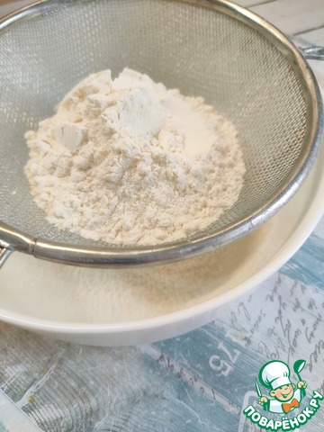 Приготовьте тесто. Просейте муку через мелкое сито.