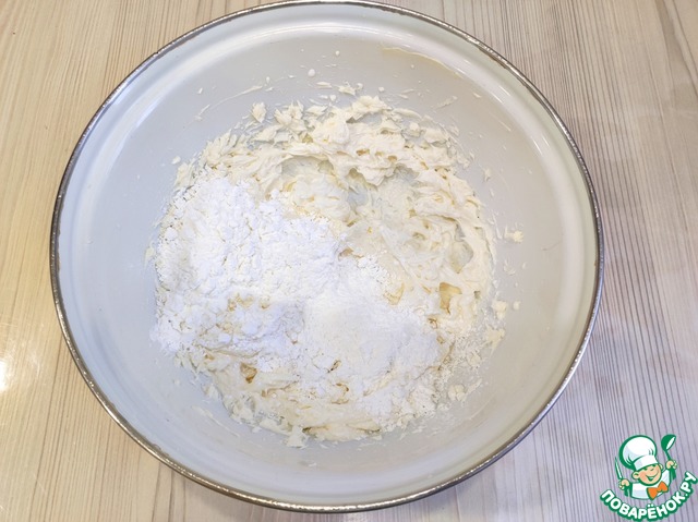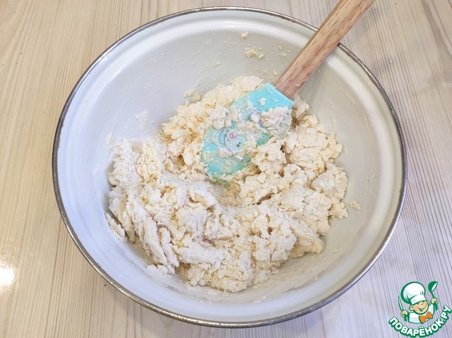 Добавить общее количество муки (250 г.). Замесить мягкое пластичное тесто.