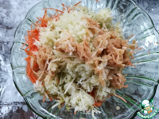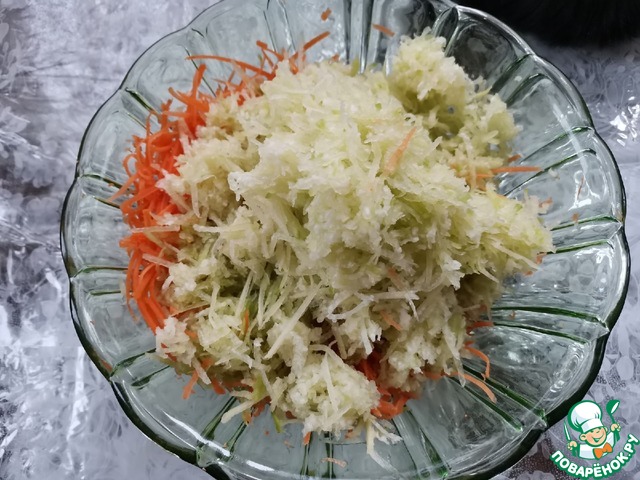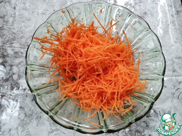 Натереть на крупной тёрке морковь,