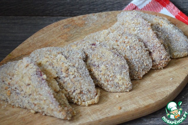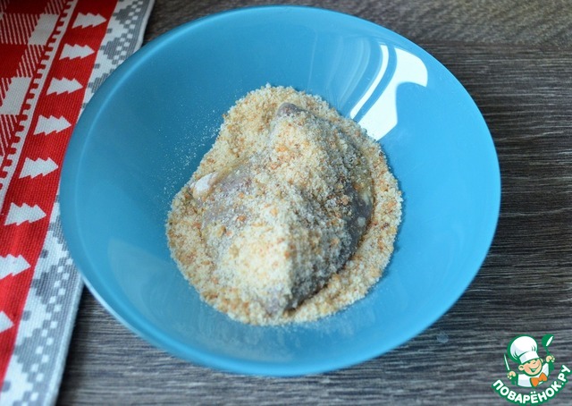 Запанировать в сухарях.
